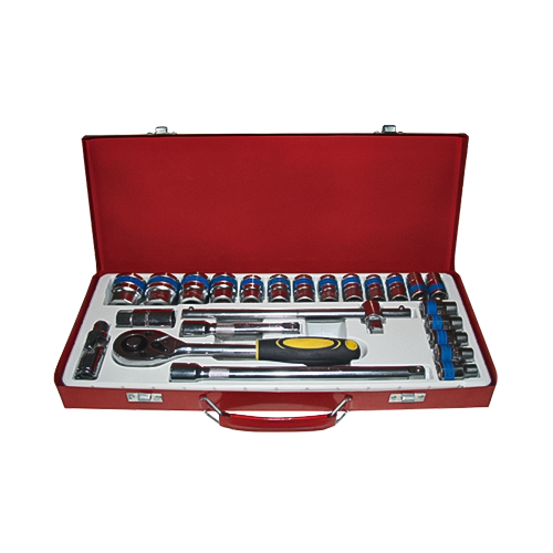 Это основной продукт в профессиональных ремонтных мастерских. Набор из 24 реверсивных насадок с храповым механизмом с приводом 1/2 дюйма выкован из высокопрочной CRV (хромованадиевой стали). Он обеспечивает исключительную устойчивость к крутящему моменту и полный охват метрических размеров, что позволяет удовлетворить самые строгие требования к креплению.